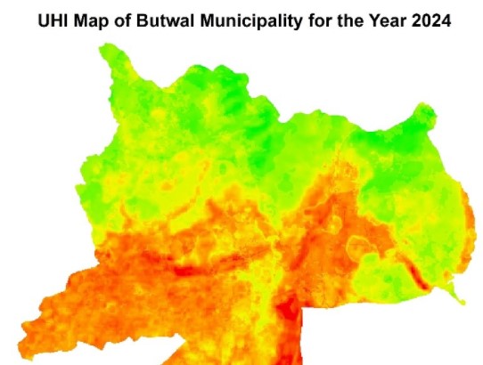 Urban Heat Island analysis to visualize spatial heat distribution in Butwal Municipality